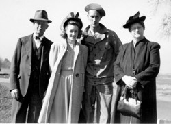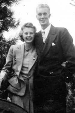 Bud Bordsen, Art Nelson, Jim Paulson and Bud Thompson not only played ball on the church team but were also choir members. After ball season was over I was conned into joining the choir. The director was obviously not familiar with my track record in singing, or they must have been desperate for basses to accept me. It was in choir that I met Lil Faro, she and her sister Myrt sang in the alto section. I did not know the Faros from high school because they were from "the other side of the tracks", but in the fall of 1941 Lil and I started dating..